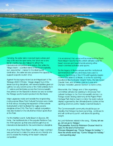 the Tobago sports tourism product into the future.      cultural heritage to the Commonwealth visitors in a